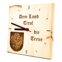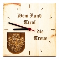 Zirben Wanduhr Tiroler Adler 3-D Optik mit Schriftzug