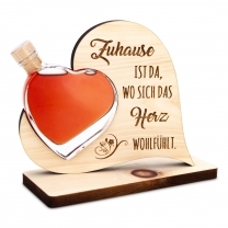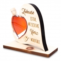 Unser Zirbenherz ist mit liebevoller handarbeit angefertigt. Das Herz ist auf einem Zirbensockel befestigt und sorgt für stabilen Halt, das kleine Glasherz ist mit unserem hochwertigen Zirbenlikör befüllt.