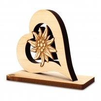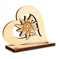 Zirbenherz auf Sockel mit Edelweiss